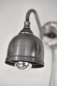 Oświetlenie industrialne, lampy LOFT, kinkiety oraz plakaty mapy.