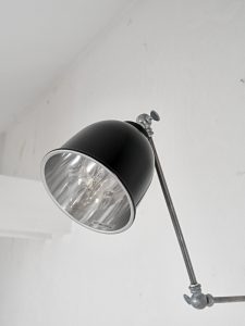 Oświetlenie industrialne, lampy LOFT, kinkiety oraz plakaty mapy.