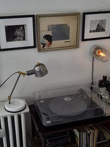 Oświetlenie industrialne, lampy LOFT, kinkiety oraz plakaty mapy.