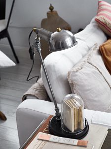 Oświetlenie industrialne, lampy LOFT, kinkiety oraz plakaty mapy.