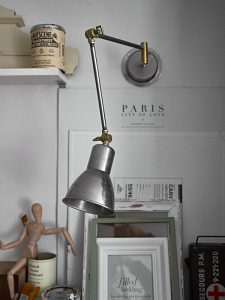 Oświetlenie industrialne, lampy LOFT, kinkiety oraz plakaty mapy.