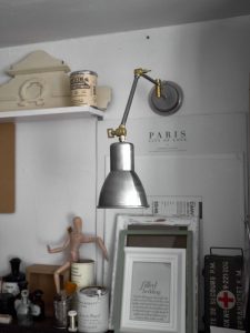 Oświetlenie industrialne, lampy LOFT, kinkiety oraz plakaty mapy.