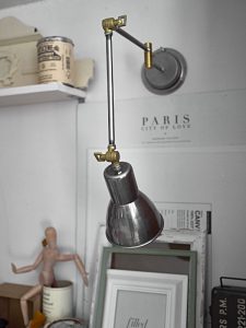 Oświetlenie industrialne, lampy LOFT, kinkiety oraz plakaty mapy.