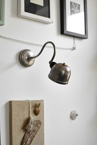 Oświetlenie industrialne, lampy LOFT, kinkiety oraz plakaty mapy.