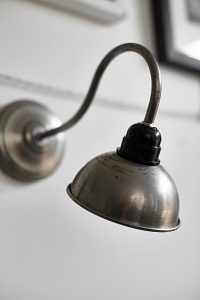 Oświetlenie industrialne, lampy LOFT, kinkiety oraz plakaty mapy.