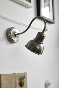 Oświetlenie industrialne, lampy LOFT, kinkiety oraz plakaty mapy.