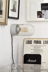 Oświetlenie industrialne, lampy LOFT, kinkiety oraz plakaty mapy.