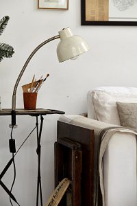 Oświetlenie industrialne, lampy LOFT, kinkiety oraz plakaty mapy.