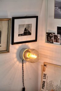 Oświetlenie industrialne, lampy LOFT, kinkiety oraz plakaty mapy.
