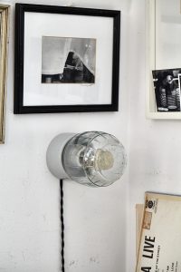 Oświetlenie industrialne, lampy LOFT, kinkiety oraz plakaty mapy.