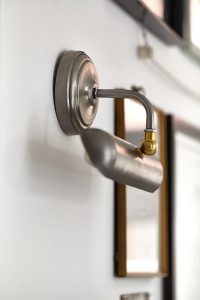 Oświetlenie industrialne, lampy LOFT, kinkiety oraz plakaty mapy.