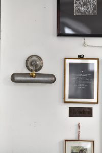 Oświetlenie industrialne, lampy LOFT, kinkiety oraz plakaty mapy.