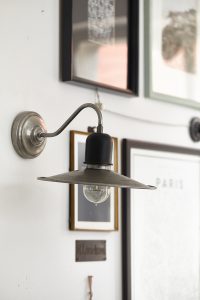 Oświetlenie industrialne, lampy LOFT, kinkiety oraz plakaty mapy.