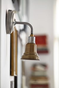 Oświetlenie industrialne, lampy LOFT, kinkiety oraz plakaty mapy.