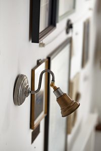 Oświetlenie industrialne, lampy LOFT, kinkiety oraz plakaty mapy.