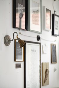Oświetlenie industrialne, lampy LOFT, kinkiety oraz plakaty mapy.