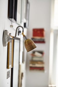 Oświetlenie industrialne, lampy LOFT, kinkiety oraz plakaty mapy.