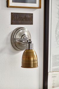 Oświetlenie industrialne, lampy LOFT, kinkiety oraz plakaty mapy.