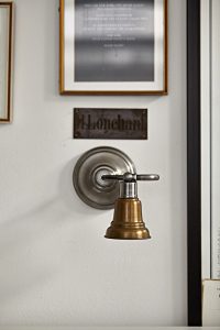 Oświetlenie industrialne, lampy LOFT, kinkiety oraz plakaty mapy.