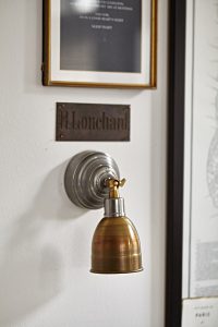 Oświetlenie industrialne, lampy LOFT, kinkiety oraz plakaty mapy.
