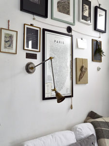 Oświetlenie industrialne, lampy LOFT, kinkiety oraz plakaty mapy.