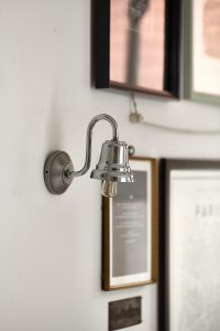 Oświetlenie industrialne, lampy LOFT, kinkiety oraz plakaty mapy.