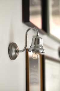 Oświetlenie industrialne, lampy LOFT, kinkiety oraz plakaty mapy.