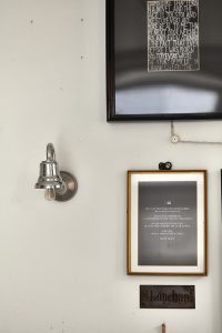 Oświetlenie industrialne, lampy LOFT, kinkiety oraz plakaty mapy.