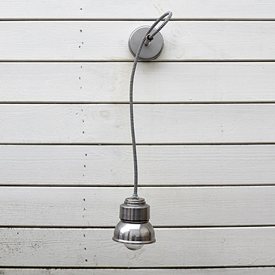 Klasyka stylu współczesnego. Wszystkie elementy metalowe. Ustawienie lampy można regulować poprzez odkręcenie motylka przy kulce przegubu. Stal surowa – może posiadać ślady rdzy i otarcia. Oprawka na żarówkę jest również metalowa, co dzisiaj jest już rzadko spotykane. Do takiej oprawki można wkręcić mocniejszą żarówkę – nawet do 150W. Kabel skręcany w otulinie z tkaniny, kolor biały. Żarówka nie jest w cenie.