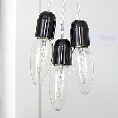 Oprawy na żarówkę – ebonitowe – maksymalna moc żarówki 60W. Oprawki na żarówkę z dużym gwintem E27. Kabel w oplocie w kolorze białym. Podsufitka emaliowana. Kabel można skrócić poprzez np. zawiązanie węzła. Żarówki można rozdzielić podwieszając je do sufitu. Pomysł zawieszenia zależy wyłącznie od kreatywności. Żarówki nie są w cenie.
