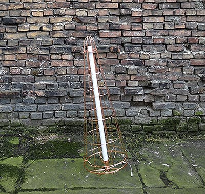 Zastosowane elementy metalowe pochodzą z recyklingu. Mogą posiadać rysy, otarcia i ślady rdzy – stal surowa. Oprawka na żarówkę metalowa. Do takiej oprawki można wkręcić żarówkę – do 75W. Oprawka na żarówkę z małym gwintem E14. Żarówka nie jest w cenie.