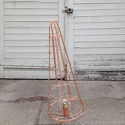 Bardzo modna obecnie miedź została wykorzystana do stworzenia oryginalnego kształtu. Jedyna taka lampa na rynku. Wersja z metalową oprawką na żarówkę. Może z powodzeniem być użyta w witrynie sklepu.