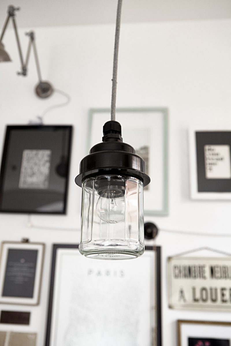Oprawka ebonitowa, kabel w otulinie z bawełny w kolorze szarym. Lampa może być zawieszona na zadaszonym tarasie lub balkonie – posiada uszczelki. Wspaniała lampa do wnętrz w stylu skandynawskim, loft i francuskim.