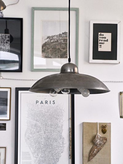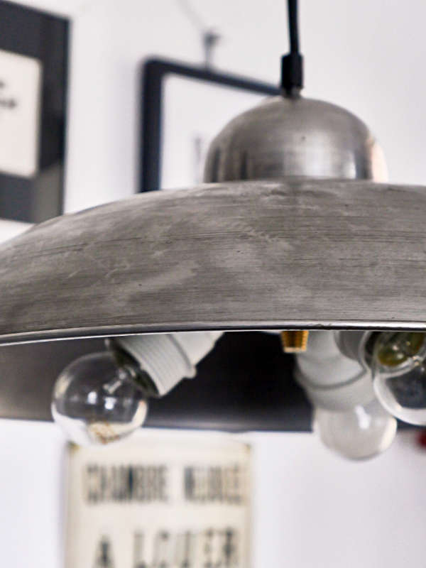 Posiada trzy (!) oprawki na żarówki – rzadkość. Kabel przemysłowy w otulinie z gumy zakończony metalową podsufitką. Wspaniała lampa do wnętrz w stylu skandynawskim, loft i francuskim. Polecam do restauracji, biura, pracowni lub nad stół. Wszędzie tam, gdzie potrzeba większej ilości światła. Żarówki nie są w cenie.