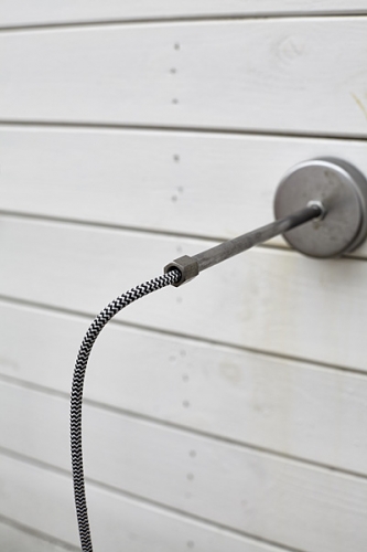 Zastosowane elementy metalowe pochodzą z recyklingu. Mogą posiadać rysy, otarcia i ślady rdzy – stal surowa. Oprawka na żarówkę metalowa z dużym gwintem E27. Lampa na przewodzie w otulinie. Długość przewodu można regulować np. poprzez schowanie w ściance. Żarówka nie jest w cenie.