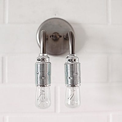 Wszystkie elementy metalowe – pozyskiwane ze starych lamp przemysłowych. Stal surowa – może posiadać ślady rdzy i otarcia. Oprawki na żarówki są również metalowe, co dzisiaj jest już rzadko spotykane. Do takich opraw można wkręcić mocniejszą żarówkę – nawet do 100W. Oprawki na mały gwint E14. Żarówki nie są w cenie.