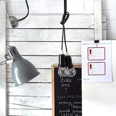 Projekt Simple Loft. Oryginalna, podwójna lampa wisząca na kablu w czarnej otulinie.