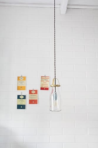 Szalenie oryginalna lampa wisząca w klasycznym stylu loft. Mosiężny koszyk + szklany klosz nawiązujący do PRL-owskiego kształtu butelek na mleko.